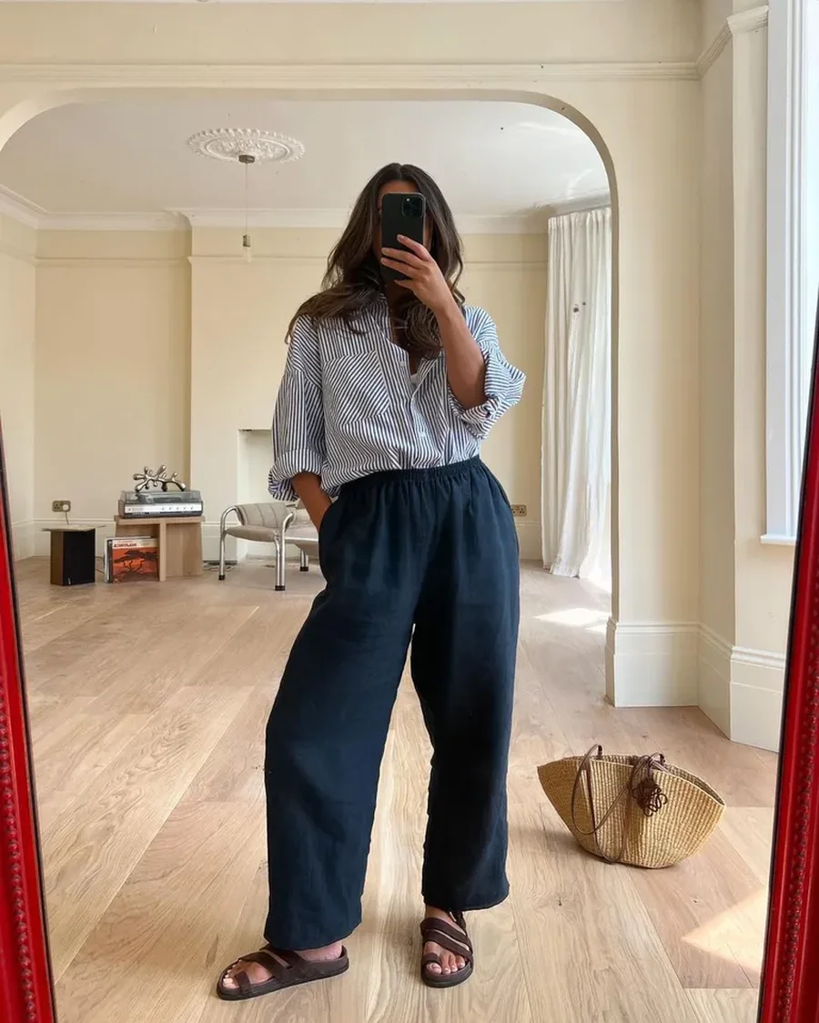 Këmishë me vija dhe pantallona linoje