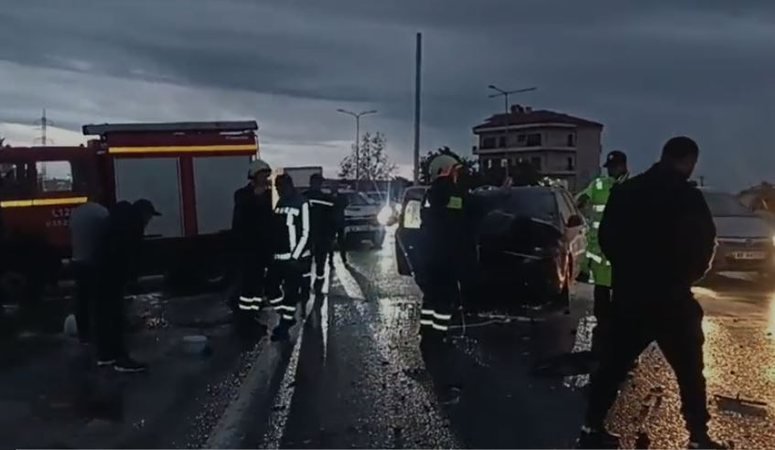 Shkak u bë përplasja e dy mjeteve “kokë më kokë” dhe për pasojë një prej makinave ka marrë flakë.