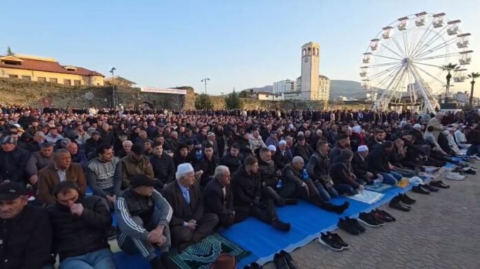 Në Elbasan mijëra besimtarë u falën përgjatë bulevardit kryesor dhe sheshin ‘Gensher”.