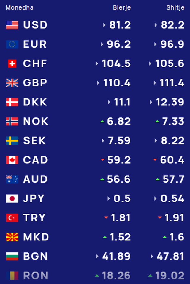 Ndërsa paundi britanik do blihet me 110.4 lekë dhe do shitet me 111.4 lekë.