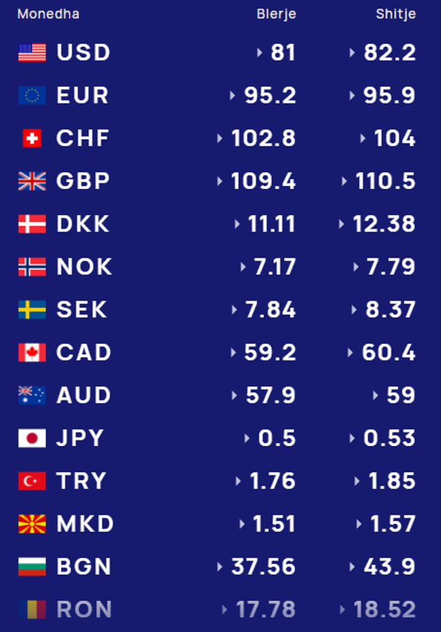 PËR KURSIN E MONEDHAVE TË TJERA SHIHNI TABELËN E MËPOSHTME: