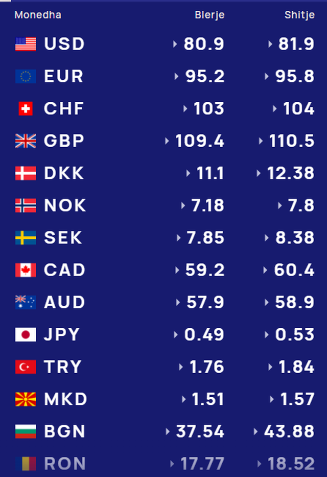PËR KURSIN E MONEDHAVE TË TJERA SHIHNI TABELËN E MËPOSHTME:
