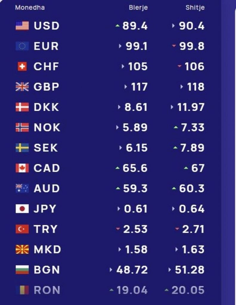 Më poshtë, po sjellim të dhënat e këmbimin valutor, për të gjitha monedhat e huaja: