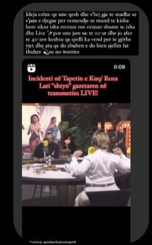 Mesa duket ajo është ofenduar dhe pas ngjarjes ka bërë një reagim në Instagramin e saj (tashmë i fshirë), ku teksa ka ndarë një video me titullin “Roza Lati shtyn gazetaren”, ka shkruar: