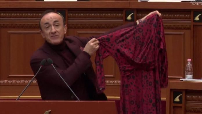 Tiranë – Deputeti demokrat Dash Sula ka përdorur një gjest provokues gjatë fjalës së tij në foltoren e Kuvendit për të ilustruar akuzat e tij ndaj kryebashkiakut Erion Veliaj dhe bashkëshortes së tij, Ajola Xoxa. Sula nxorri një fustan nga përfaqësuesja e Kuvendit dhe deklaroi se paratë e taksapaguesve të Tiranës janë shpenzuar në veshje luksoze dhe shpenzime të tjera personale.
