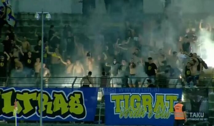 34’ Ndërpritet për disa momente ndeshja për shkak të hedhjes së fishekzjarrëve që nuk lejojnë rivënien anësore nga futbollistët e Dinamos.