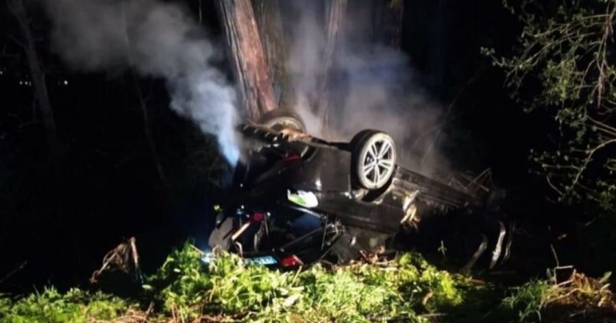 Makina tip BMW e zezë, me të cilën po udhëtonin ka dalë nga rruga dhe më pas është përmbysur.