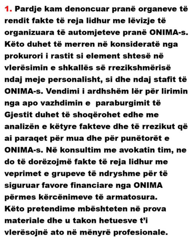 Pronari i kompanisë ONIMA, Erkand Shabani, ka reaguar për herë të parë pas arrestimit të këngëtarit Besart Kelmendi, duke paralajmëruar publikimin e pamjeve dhe dokumenteve që lidhen me incidentin në ambientet e kompanisë.