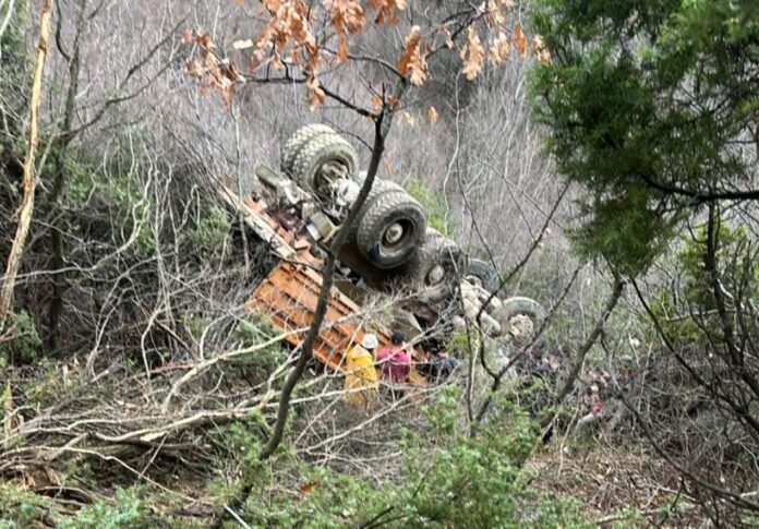 Foto e kamionit të aksidentuar në Gramsh ku humbi jetën infermierja dhe u plagosën drejtuesi dhe një mësuese