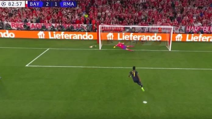 Kur u duk se ndeshja po mbyllej me fitoren e bavarezëve, Vinicius JR shënoi sërish, këtë herë me penallti duke vulosur barazimin në Allianz Arena.