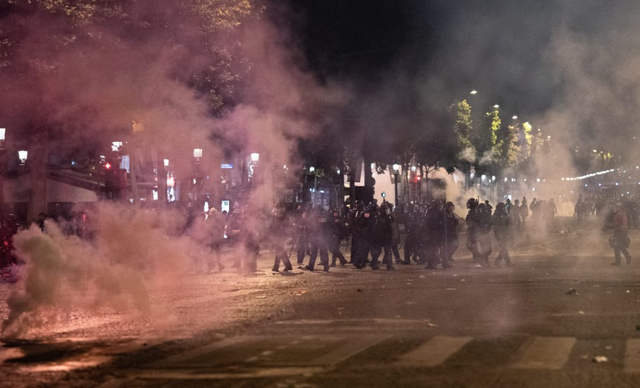 Por gëzimi në rrugët e Parisit u kthye shpejt në kaos, më shumë se 130 persona janë arrestuar, disa dyqane janë plaçkitur dhe makina janë djegur.