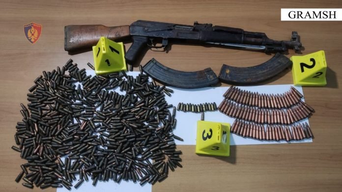 Gjatë kontrolleve në banesën e 55-vjeçarit, të kryera në kuadër të operacionit policor të koduar “Indicia”, u gjetën 1 armë zjarri kallashnikov dhe 690 fishekë të kalibrave të ndryshëm, të cilat posedoheshin pa leje, nga ky shtetas.