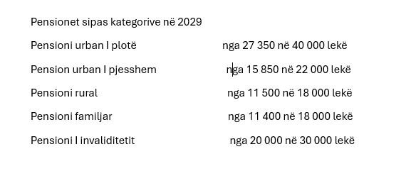 Në vitin 2029, ai do të marrë 40 mijë lekë në muaj. Edhe për pensionin e dalë nga kontributet në fshat, një individ që sot merr 11 mijë lekë, pas 4 vitesh ai do të ketë pension mujor 18 mijë lekë.