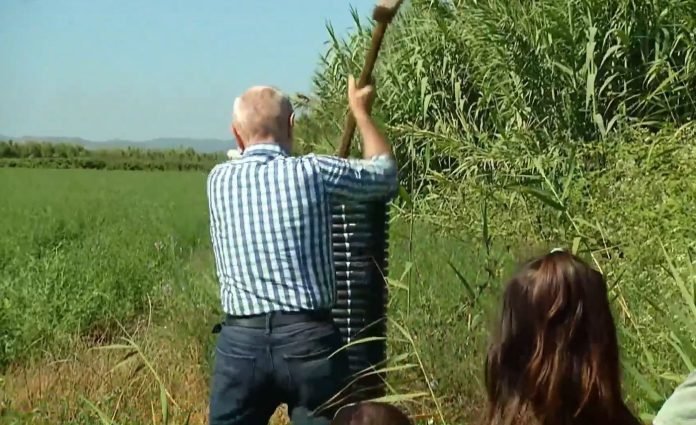 Më pas merr varenë dhe nisi të qëllojë një shtyllë prej hekuri e bën thirrje për dhunë.