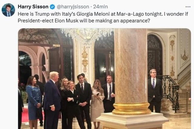 Kryeministrja shoqërohej nga ambasadorja në SHBA Mariangela Zappia. Bashkë me ta edhe këshilltari i ardhshëm i sigurisë kombëtare, Mike Waltz dhe ambasadori i ardhshëm i SHBA në Itali, Tilman Fertitta. Sipas një gazetari të Wall Street Journal, Trump tha se “Meloni ka pushtuar vërtet Europën”.