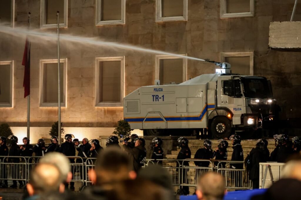 Është përshkallëzuar situata në protestën që po zhvillohet përpara godinës së Parlamentit, ku protestuesit kanë hedhur bomba molotovi dhe fishekzjarrë ndaj forcave të policisë.