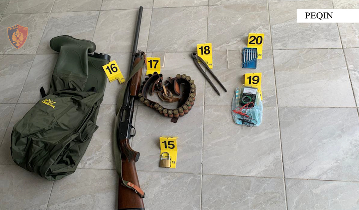 Gjatë kontrollit fizik, të arrestuarit iu gjetën një mjet (darë) që e përdorte për të kryer vjedhjet, ndërsa gjatë kontrollit në banesën e tij u gjetën arma e gjahut dhe sendet e vjedhura.