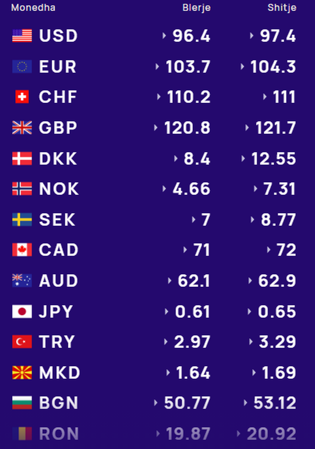 Më poshtë, po sjellim të dhënat e këmbimin valutor, për të gjitha monedhat e huaja: