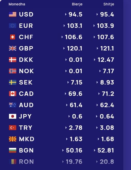 Më poshtë, po sjellim të dhënat e këmbimin valutor, për të gjitha monedhat e huaja: