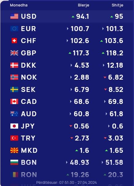 Monedha evropiane euro do blihet me 100.7 lekë dhe do shitet me 101.3 lekë.