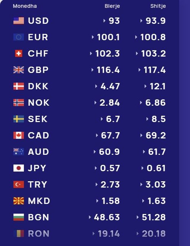 Më poshtë, po sjellim të dhënat e këmbimin valutor, për të gjitha monedhat e huaja:
