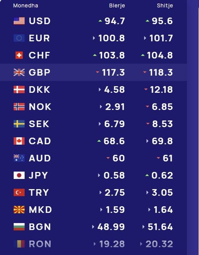 Më poshtë, po sjellim të dhënat e këmbimin valutor, për të gjitha monedhat e huaja: