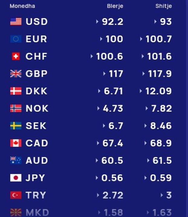 Më poshtë, po sjellim të dhënat e këmbimin valutor, për të gjitha monedhat e huaja: