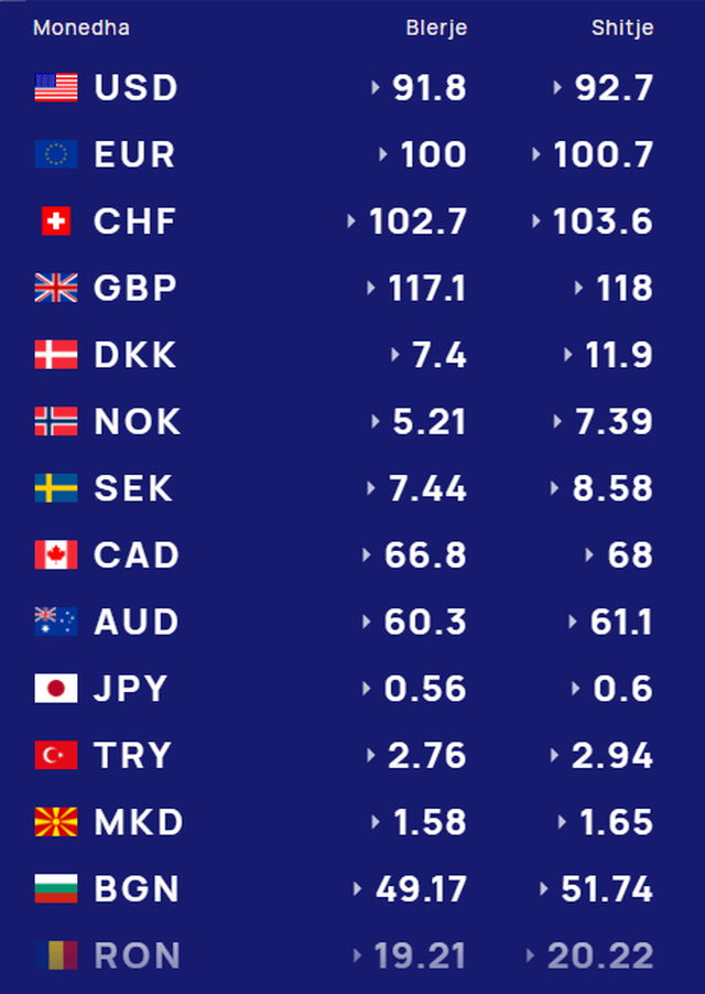 Më poshtë, po sjellim të dhënat e këmbimin valutor, për të gjitha monedhat e huaja: