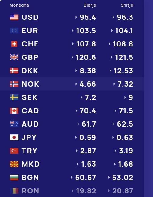 Më poshtë, po sjellim të dhënat e këmbimin valutor, për të gjitha monedhat e huaja: