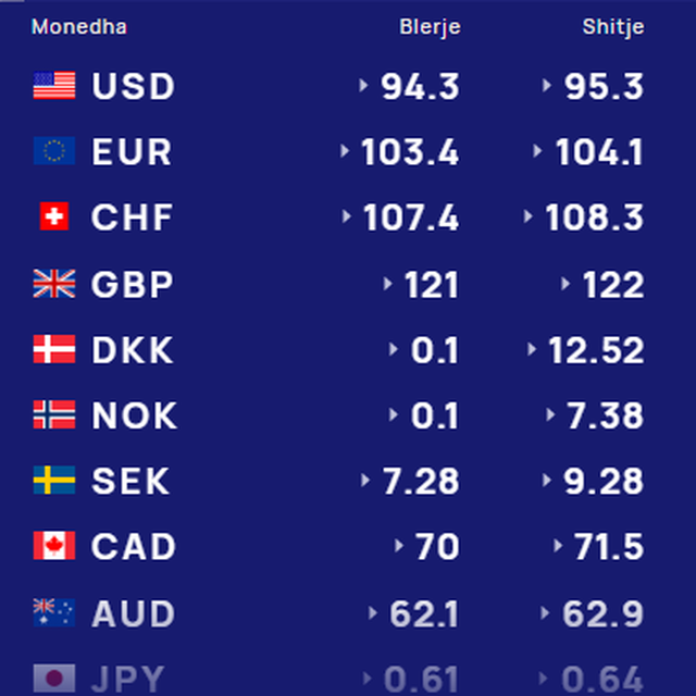 Më poshtë, po sjellim të dhënat e këmbimin valutor, për të gjitha monedhat e huaja: