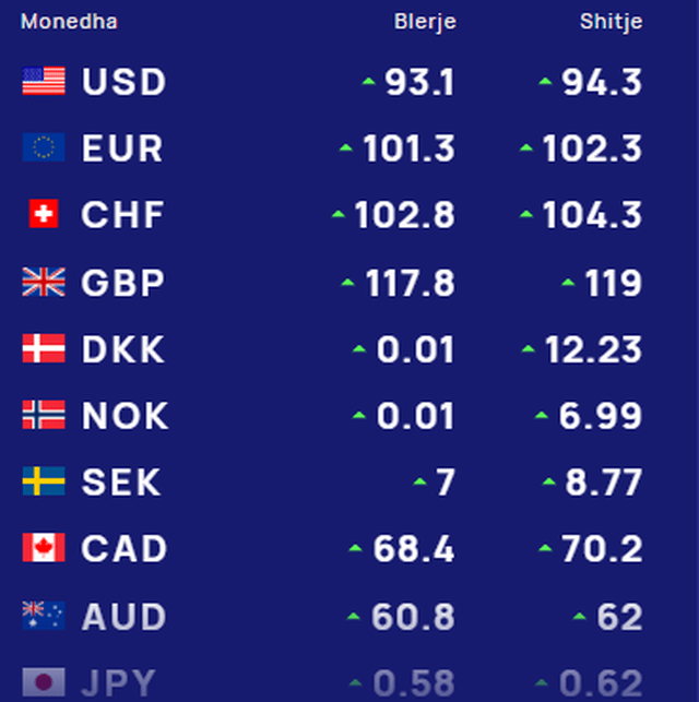 Më poshtë, po sjellim të dhënat e këmbimin valutor, për të gjitha monedhat e huaja:
