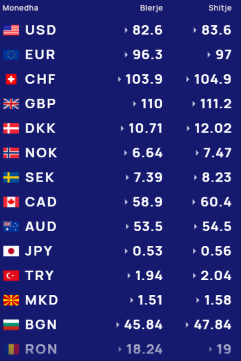 Më poshtë, po sjellim të dhënat e këmbimin valutor, për të gjitha monedhat e huaja: