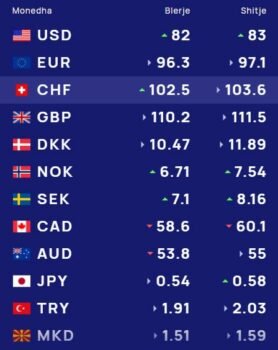 Ndërsa paundi britanik blihet me 110.2 lekë dhe shitet me 111.5 lekë.
