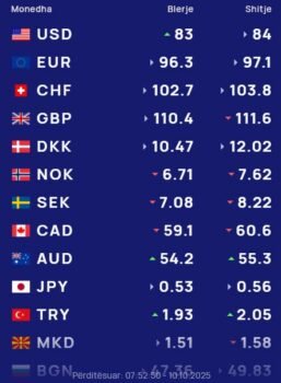 Ndërsa paundi britanik blihet me 110.4 lekë dhe shitet me 111.6 lekë.