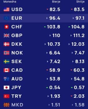 Ndërsa paundi britanik blihet me 110 lekë dhe shitet me 111.2 lekë.