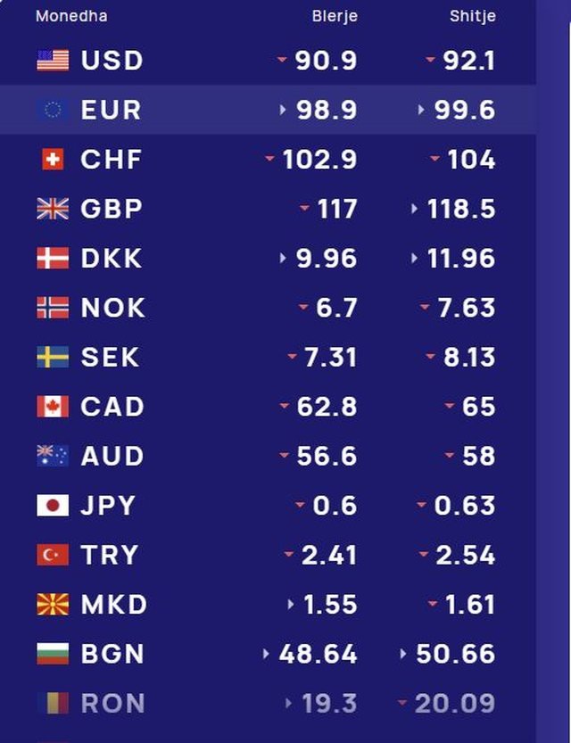 Më poshtë, po sjellim të dhënat e këmbimin valutor, për të gjitha monedhat e huaja: