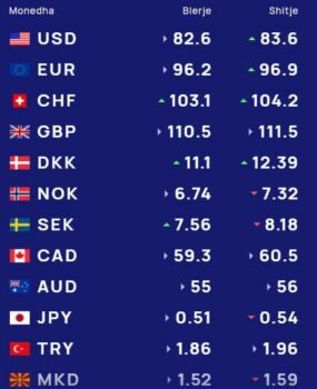 Ndërsa paundi britanik do blihet me 110.5 lekë dhe do shitet me 104.2 lekë.