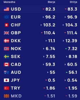 Ndërsa paundi britanik do blihet me 110.4 lekë dhe do shitet me 111.4 lekë.