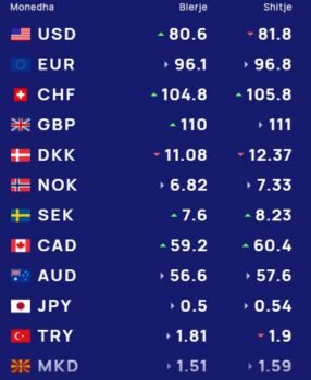 Ndërsa paundi britanik do blihet me 110 lekë dhe do shitet me 111 lekë.