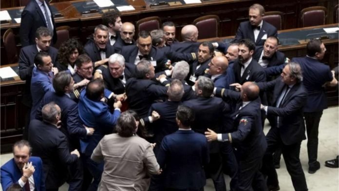 Deputetët italianë janë përfshirë në konflikt fizik ditën e sotme gjatë seancës parlamentare.