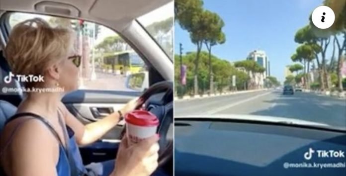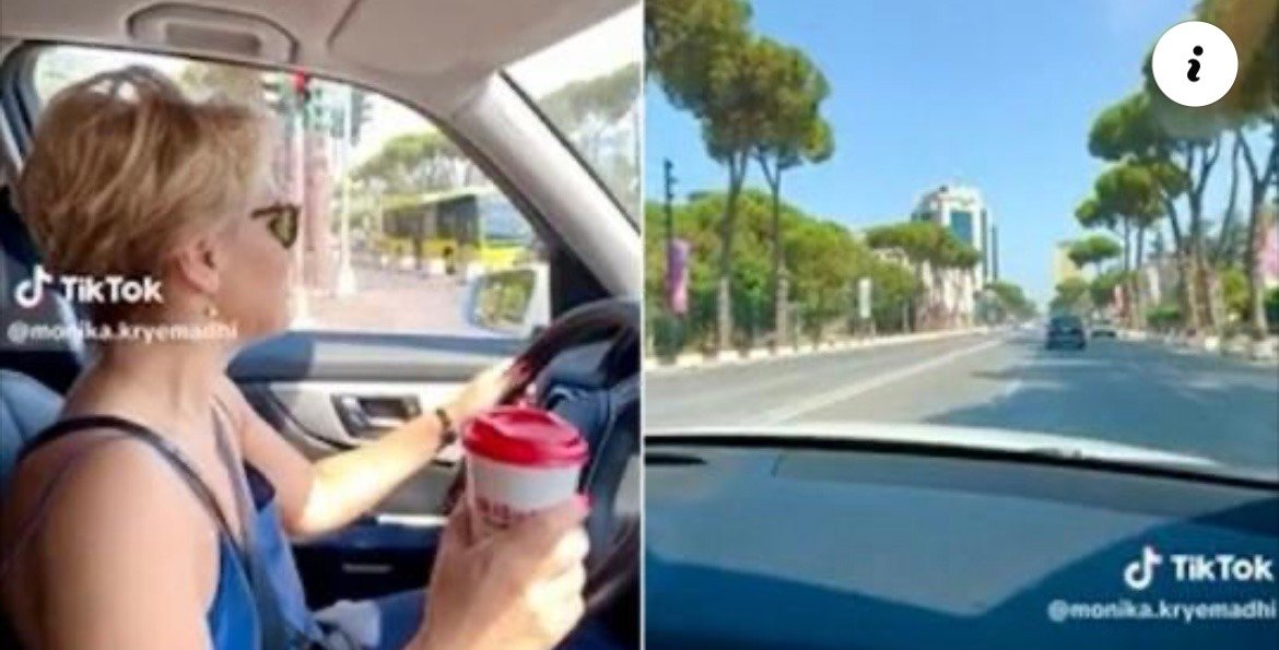 Monika ka publikuar një video në Tik Tok, ku shfaqet me njërën dorë në timon, ndërsa në tjetrën duke mbajtur një kafe dhe duke shijuar muzikën në sfond.