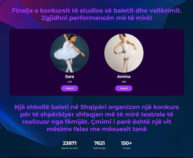 “Përshëndetje! A mund të ndani pak kohë për të votuar Sarën? Ajo është vajza e shoqes sime dhe fituesi merr një vit mësime vallëzimi pa pagesë. Kjo është jashtëzakonisht e rëndësishme për të.”