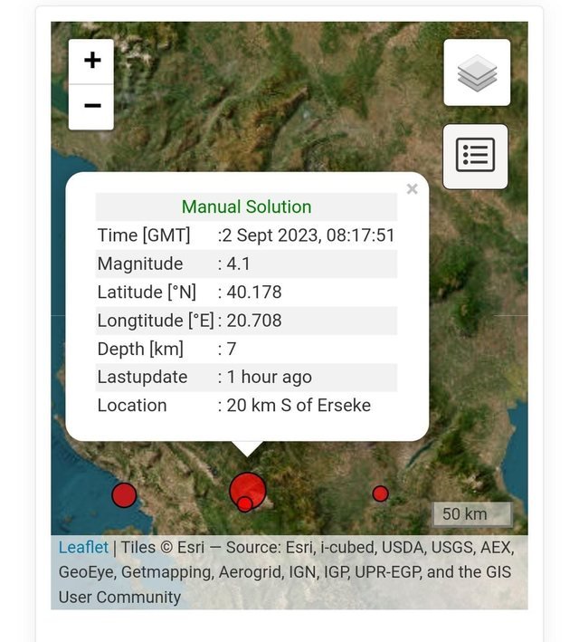 Sipas institutit të GjeoShkencave tërmeti ka patur epiqendrën e tij 20 KM larg qytetit të Ersekës, vend ku dhe është ndjerë më tepër. Magnituda e tërmetit ka qenë 4.1 ballë e shkallës Rihter.