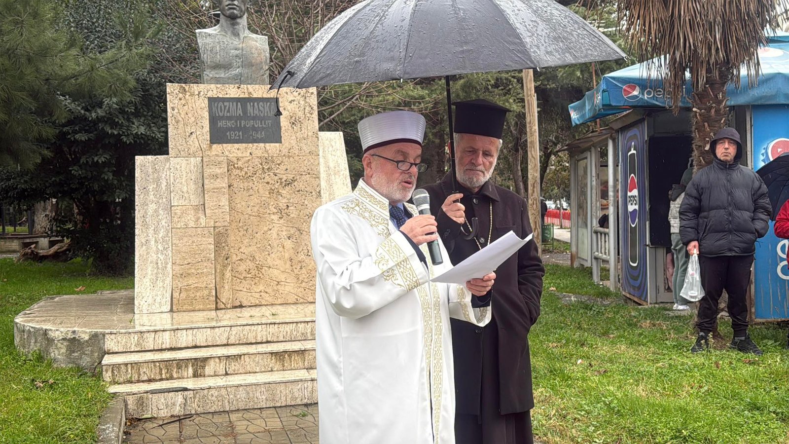Në aktivitet morën pjesë përfaqësues të të gjitha komuniteteve fetare, të cilët përcollën mesazhe uniteti dhe përgjegjësie ndaj natyrës. Një nga momentet më domethënëse u shënua gjatë fjalës së myftiut Agim Duka, kur prifti ortodoks Stavri Çipi u afrua dhe i mbajti çadrën për ta mbrojtur nga shiu, duke dhënë një mesazh simbolik të fortë respekti dhe solidariteti ndërfetar.