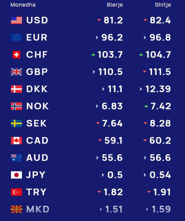 Ndërsa paundi britanik do blihet me 110.5 lekë dhe do shitet me 111.5 lekë.