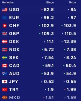 Ndërsa paundi britanik blihet me 109.3 lekë dhe shitet me 110.5 lekë.