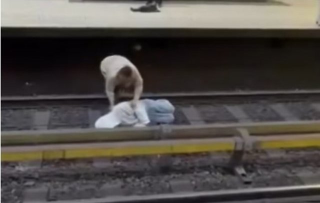 Në pamjet që kanë qarkulluar në internet, burri shihet teksa hidhet mbi linjat e metrosë dhe shtrihet mbi to, ndërsa situata bëhet kritike për shkak të afrimit të trenit.