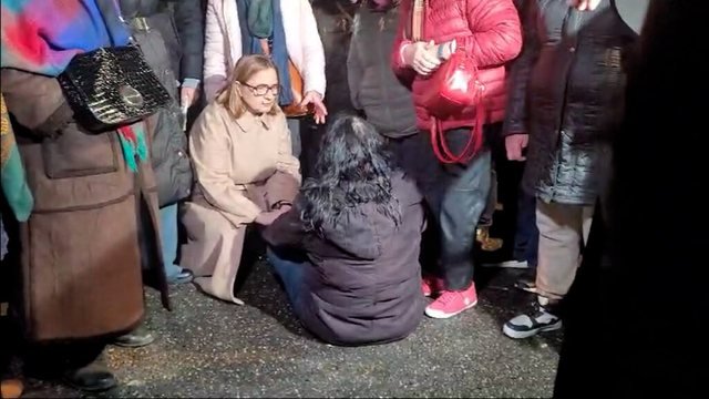 “Ka probleme në frymëmarrje. Mos e lëvizni nënën pa ardhur ambulanca”, dëgjohet teksa thotë një protestues tjetër.