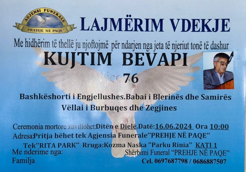Ndarja nga jeta ka hidhëruar pa masë familjen, të afërm dhe të gjithë ata që e njihnin profesor Bevapin.
