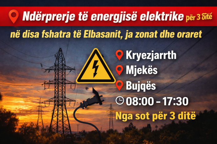 Banorët e Kryezjarrthit, Mjekës dhe Bujqës do të përballen me ndërprerje të energjisë elektrike për tre ditë me radhë, duke nisur nga 8 prilli 2026, në oraret 08:00 – 17:30.